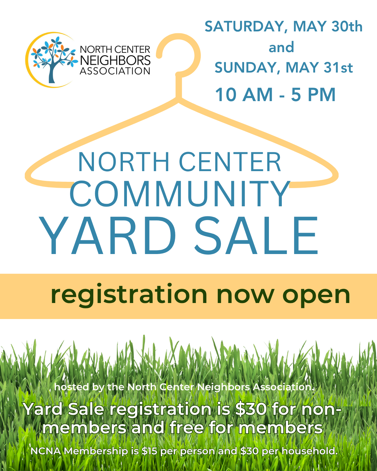 Members, neighbors, and friends - we heard your requests! We’re excited to announce that NCNA’s Annual Yard Sale will once again be a two-day event! Join us on Saturday, May 30th and Sunday, May 31st, from 10:00 am to 5:00 pm. Hosts can sign up to participate on one day or both days. We’re looking forward to another fantastic weekend in North Center, featuring 100+ sales with a wide variety of great finds!